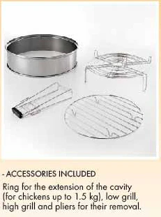 - Extension ring available for cooking larger roasts such as whole chicken and turkey. (Extension ring included with set)